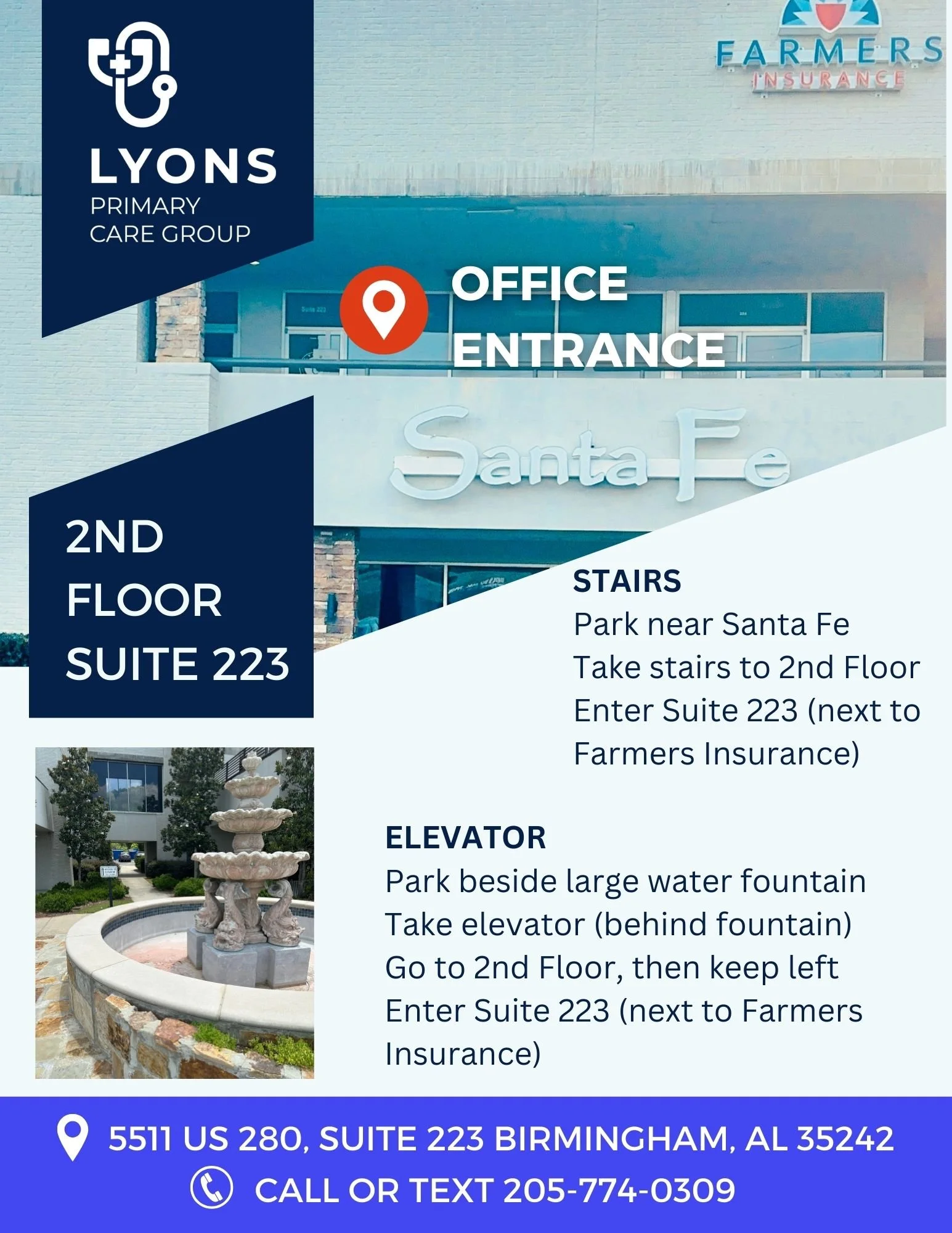 Enter Suite 223 (next to Farmers Insurance)